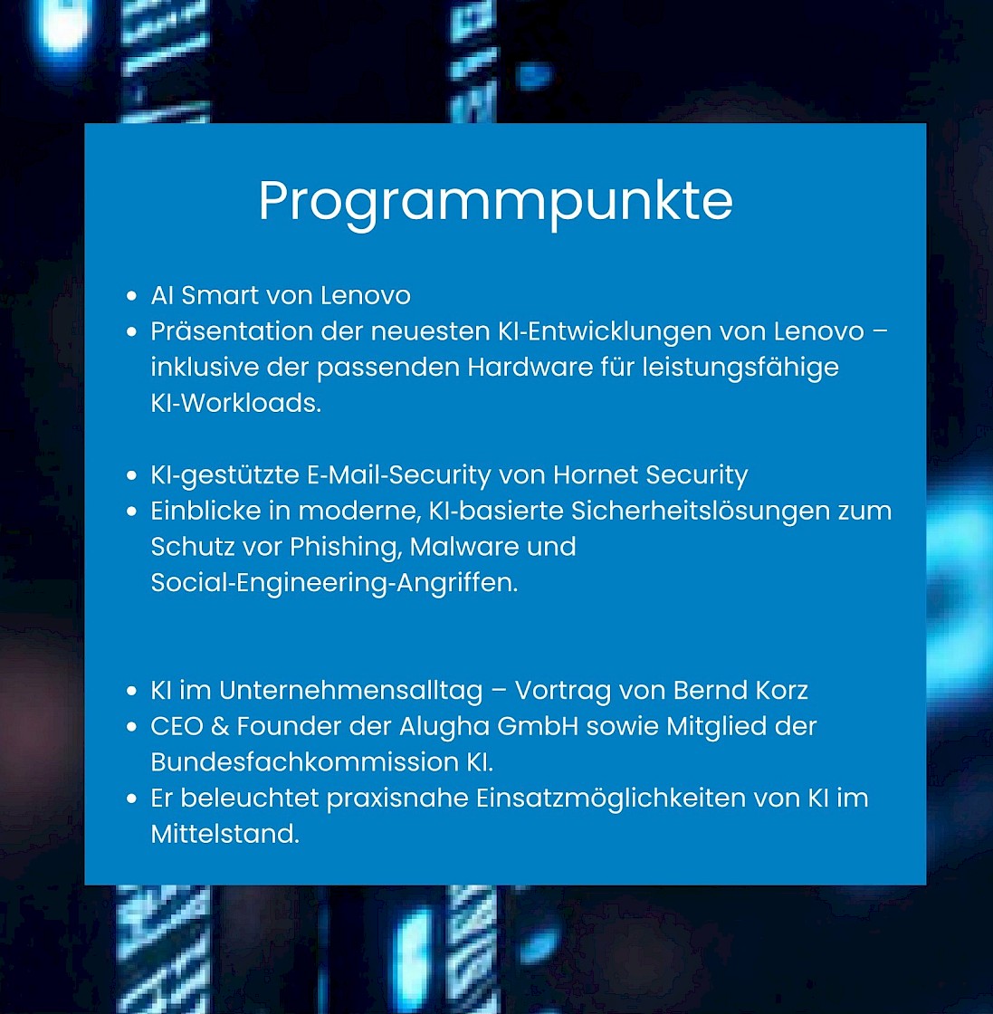 Wir laden Sie herzlich zu unserem exklusiven Business Breakfast am Montag, den 31.März 2026, von 9:00-12:00 Uhr in unseren Räumlichkeiten der SOTEC in Laudenbach ein. Sie erhalten wertvolle Impulse, wie Ihr Unternehmen zukunftsfähig wird und der wertvolle Austausch mit Branchenexperten und Gleichgesinnten. Details: Datum: 31.03.2026 |